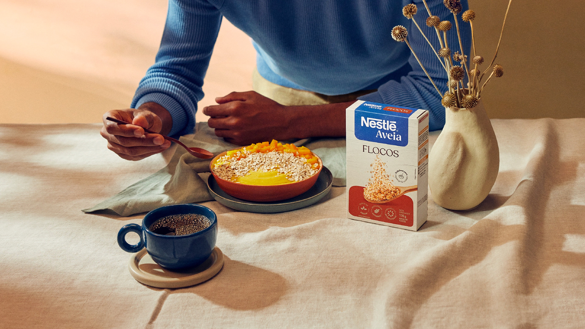 Concept: Nestlé Aveia is about admiring the organic textures and shapes of each grain. More than that, it’s about bringing this perspective into everyday life. It’s about being well enough to see the beauty even in what seems to be a flaw. Inspired by the Japanese concept of Wabi-Sabi,Nestlé Aveia embraces the beauty of imperfections as the narrative thread for a light and unpretentious visual story, with scene compositions, materials, utensils, and lighting that allow themselves to be imperfect.